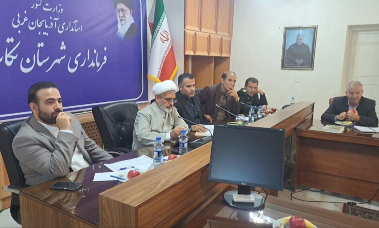 جلسه بررسی مسئولیتهای اجتماعی معادن شهرستان تکاب با حضور حجتالاسلام محمد میرزایی، نماینده مردم شهرستانهای تکاب و شاهیندژ در مجلس شورای اسلامی، و محمد نیکنام، فرماندار تکاب، جمعی از مسوولان و مدیران معادن برگزار شد.
