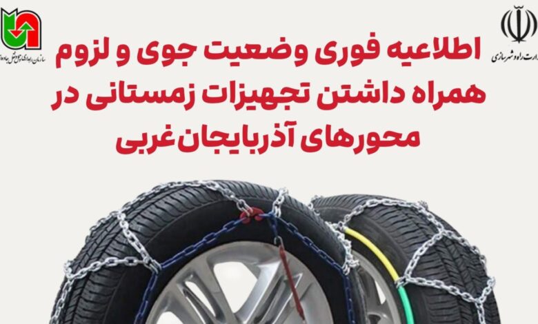 اطلاعیه فوری وضعیت جوی و لزوم همراه داشتن تجهیزات زمستانی در محورهای آذربایجانغربی