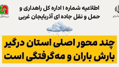 اطلاعیه شماره ۱ اداره کل راهداری و حمل و نقل جاده ای آذربایجان غربی