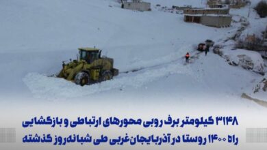 ۳۱۴۸ کیلومتر برف روبی محورهای ارتباطی و بازگشایی راه ۱۴۰۰ روستا در آذربایجانغربی طی شبانهروز گذشته