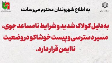 به گزارش پایگاه خبری اقتصاد مشارکتی/به اطلاع شهروندان محترم میرساند، بهدلیل کولاک شدید و شرایط نامساعد جوی، مسیر دسترسی و…