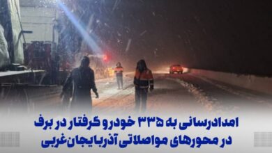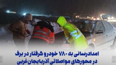 امدادرسانی به ۳۳۵ خودرو گرفتار در برف در محورهای مواصلاتی آذربایجانغربی