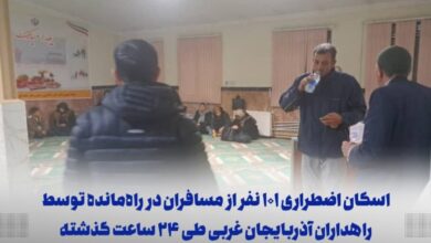 اسکان اضطراری ۱۰۱ نفر از مسافران در راهمانده توسط راهداران آذربایجان غربی طی ۲۴ ساعت گذشته