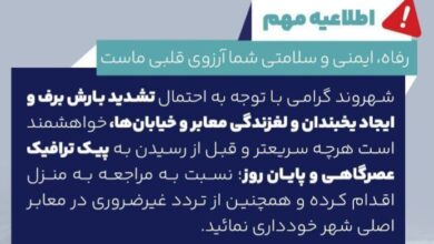 به گزارش پایگاه خبری اقتصاد مشارکتی/شهروند گرامی با توجه به احتمال تشدید بارش برف و ایجاد یخبندان و لغزندگی معابر…