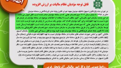 به گزارش پایگاه خبری اقتصاد مشارکتی/بر اساس اطلاعیه سازمان امور مالیاتی کشور، مؤدیان نظام مالیات بر ارزش افزوده تا پایان…